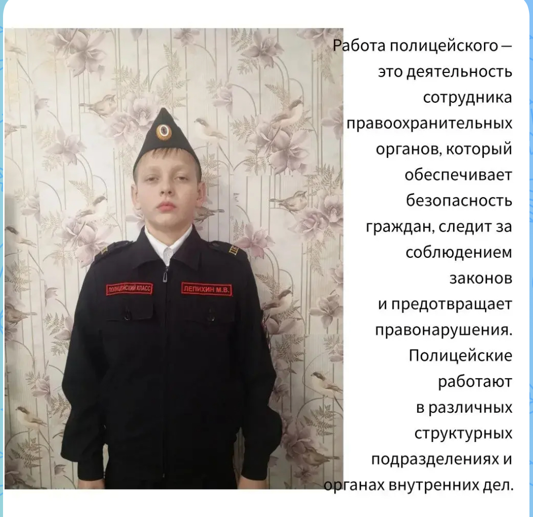Когда я вырасту, я хочу стать настоящим профессионалом своего дела. Хочу помогать людям и делать всё возможное, чтобы в нашем городе было безопасно и спокойно. Ведь нет ничего важнее, чем защищать тех, кто нуждается в помощи.