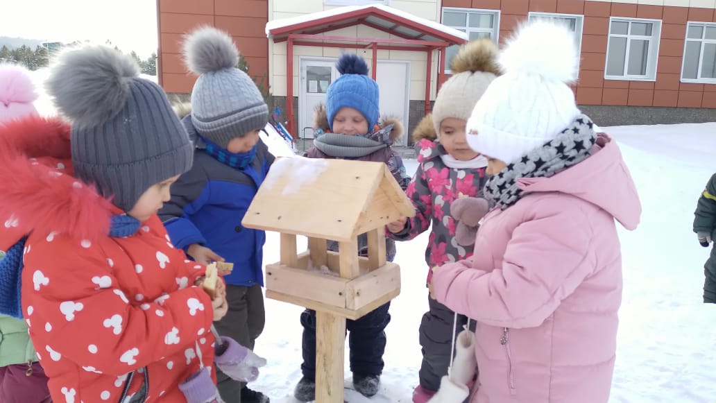 Зима – трудное время для птиц, особенно если она суровая и многоснежная. Подкорма зимующих птиц приносит пользу не только пернатым, но и педагогам в обучении и воспитании детей. Ребята средней группы через беседы, познавательные занятия и наблюдения узнают о различных видах птиц, их особенностях внешнего вида и повадках. Ребята учатся заботиться о пернатых.